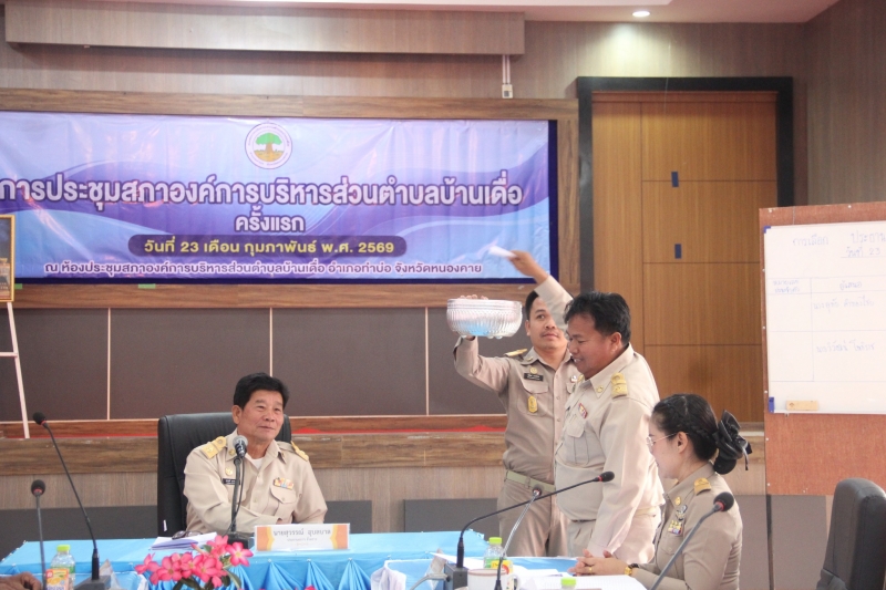 สมาชิกสภาองค์การบริหารส่วนตำบลบ้านเดื่อ เข้าร่วมประชุมสภาองค์การบริหารส่วนตำบลบ้านเดื่อ ซึ่งเป็นการประชุมสภาฯ ครั้งแรกหลังจากที่คณะกรรมการการเลือกตั้ง ได้ประกาศรับรองผลการเลือกตั้งสมาชิกสภาท้องถิ่น เพื่อให้สภาฯ มีมติเลือกประธานสภาฯ รองประธานสภาฯ และเลขานุการสภาฯ และกำหนดสมัยประชุม โดยนายสมควร ใจซื่อ นายอำเภอท่าบ่อ เป็นประธานเปิดการประชุมสภาฯ