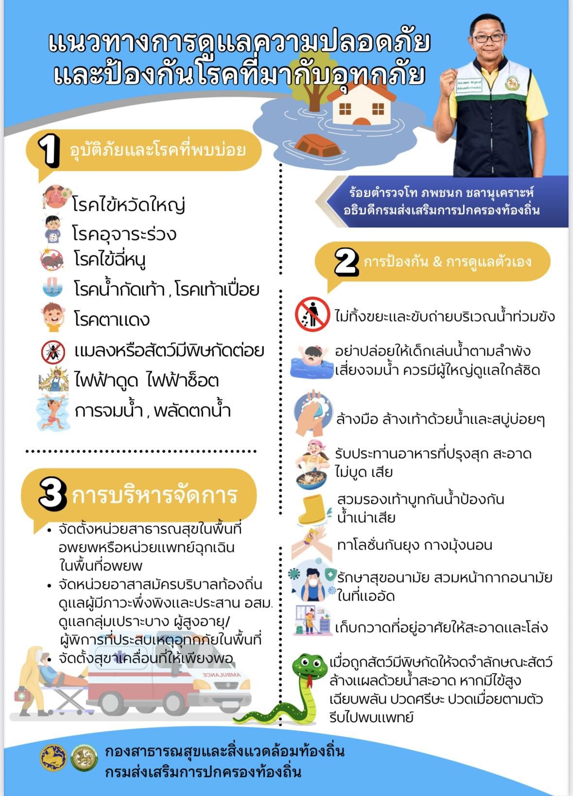 แนวทางการดูแลความปลอดภัยและป้องกันโรคที่มากับอุทกภัย |