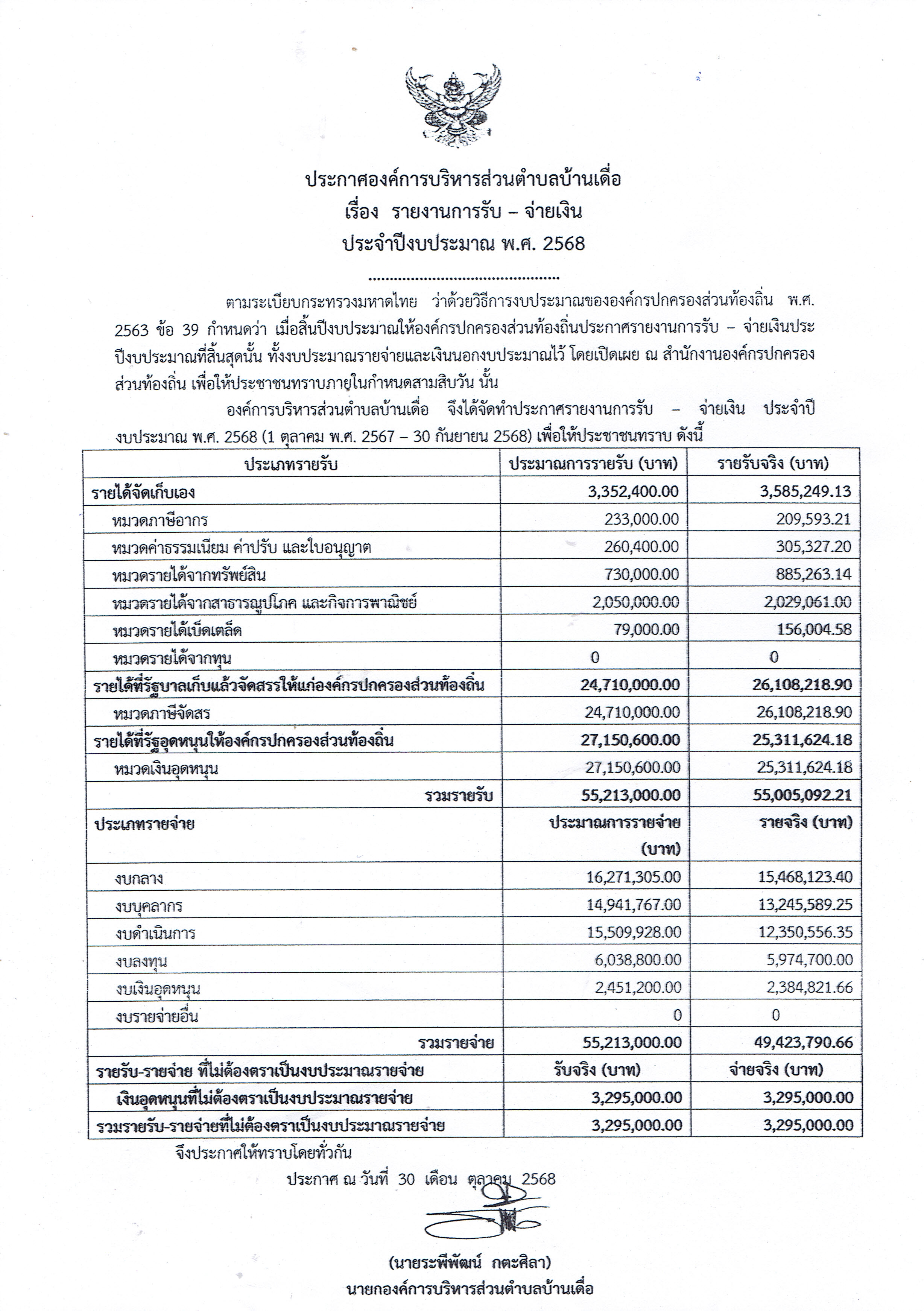 รายงานการรับ-จ่ายเงิน ประจำปีงบประมาณ 2568 |