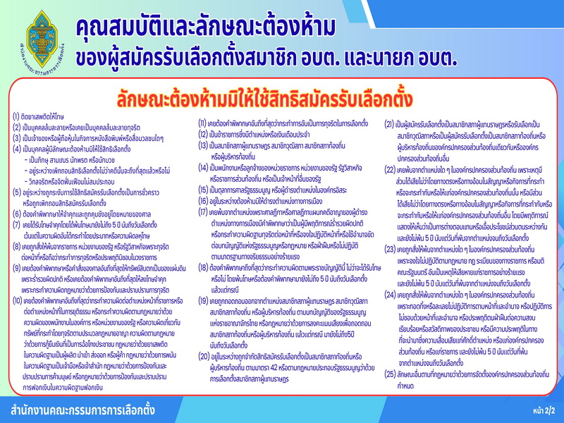 คุณสมบัติและลักษณะต้องของผู้สมัครรับเลือกตั้งสมาชิกสภาองค์การบริหารส่วนตำบล หน้า 2